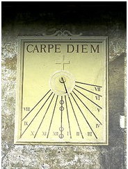 CARPE DIEM (Carpe diem quam minimum credula postero )– “Seize the day, trusting as little as possible in the future”. Prihvatam tumčenje ove fraze kao uživaj, iskoristi dan, dodajući da nam vreme izmiče šta god radili .