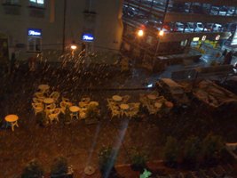 Obradujem se kao dete snegu svuda, pa i u Beogradu, onih prvih minuta i sat-dva. Grad večeras izgleda nepripremljen na nedeljama najavljivani prvi sneg, čudan je pogled na suncobrane i baštenske stolice, da li je ovo samo pripremna epizoda da prihvatimo da je zima stigla. Sve je uobičajeno, možda klimatske promene od kojih strahujemo nisu stigle kod nas.