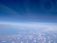 Cekajici u avionu, s ugasenim motorima na pisti, da nam dozvole da ga napustimo (sto je obicno prilicno neprijatan deo putovanja bez obzira na geografsku sirinu i duzinu, jer svi odjednom postaju veoma nestrpljivi, s punim rukama torbi, kesa, stoje u skucenom prostoru izmedju redova sedista , nesto kao da smo u tipicnom domacem prepunom gradskom autobusu), i pored guzve odjednom sam osetila kako su mi nezadrzivo teski kapci i imam uzasnu potrebu da zaspim. Medju nama (globtrotterima) ima onih prirodno obdarenih srecnika koji mogu da spavaju svuda i na svakom mestu, u svakom prevoznom sredstvu i naravno, mozda najsladje izuveni s jastucetom pod glavom u avionu, skoro neprekidno. Ja nisam od njih, nemam problem s hotelskim sobama, razlicitim krevetima i jastucima, ali vozovi, autobusi, pa i avioni, cak i na letovima dugim osam sati, ne pruzaju mi dovoljno uslova da mogu mirno i kontinualno da odspavam, katkad dremnem kratko. Gledanje kroz prozor, ako se posreci da to mesto dopusta, moze biti zanimljivo i ne tako jednolicno kako bi se mozda ocekivalo.